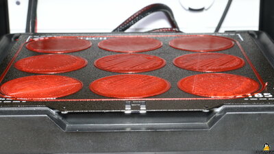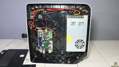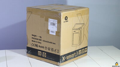 Package contentsFigure 2:The printer ships well packaged and completely assembled. AssemblyFigure 3:After unpacking, all moving parts on the printer are fixed with cable ties or screws to secure them during transport. The removal of those locks is the most time consuming part of bringing this printer in operation. After that, all you have to do is plug in the filament holder and connect the device to you mains voltage - the X-Smart3 is now ready to use. Pictures C-L show the printer with the plastik covers removed. In order to be able to remove the plastic paneling, you first have to loosen a few screws. Then it takes a bit of courage, because a few more clipped connections on the lid have to be loosened - these connectors sometimes get damaged in the process. Normally, however, this paneling does not have to be removed, all service work can also be carried out with the panels on the frame, I just wanted to give you a better look on the construction. MechanicsFigure 4:Z-axis belt tension is adjusted by simply moving a pulley. The two belts on the motors for the X and Y axis are tensioned by first loosening two somewhat hidden screws. The tension is then adjusted with a third screw, which can be done very sensitively with this mechanism. After that all screws must be tightened again. The movement of the print head along the X and Y axes is designed via a so-called CoreXY mechanism. This type of mechanics allows a very compact design. Furthermore, the print bed and thus also the objects to be printed are only moved along the Z-axis, which happens very slowly. The maximum print volume is 17.5x18x17cm. The X-Smart3 is advertised as a very fast printer - the moving parts of the X and Y axes are therefore trimmed to be as lightweight as possible. This applies to the round carbon rods on which the print head is guided along the X-axis. According to a sticker on the printer, those carbon rods can not be replaced! The plastic cover on the front of the print head can be removed quite easily. Before pulling out the Teflon tube, the lock must be pushed down. Two screws have to be loosened in order to be able to remove the hotend. This allows any blockages in the extruder to be removed very easily. Of course, I'm not giving up at this point, and will continue to disassemble the extruder to let you take a look at all the components. The filament is pressed towards the hotend from two sides via a gear. With the pinion on the extruder motor there is a reduction of 9.5:1. The extruder motor is a very lightweight model with a round design. There is a flexible steel plate on the print bed, which makes it easier to detach finished prints. This plate is coated on both sides and snaps well into the specified position, held in place by magnetic force. ElectronicsFigure 5:Most of the electronic components are located in the base of the printer that is accessible after removing a metal plate. The power supply delivers an output voltage of 24V at up to 14.6A, which corresponds to 350W. The mainboard turns out to be a mini-PC with a 64-bit Coretex A53 processor and USB interfaces as well as a LAN socket, which, however, is not accessible from the outside. WLAN is implemented via an USB stick. The stepper motor drivers are soldered to the circuit board - so they cannot be replaced. Two super caps ensure that the PC can shut down correctly when the printer is switched off. The firmware of the X-Smart3 is based on the open source solution Klipper and the manufacturer of the printer complies with the requirement of the GPL license to publish the modified source code. A link to the corresponding Github repository of the current firmware version is available directly on the Qidi support page - that's exactly how it should be! A firmware update can be installed relatively easily via the USB stick, but it takes some time - in my case a good 20 minutes. Something the X-Smart3 doesn't like is switching the printer off and on again immediately - there should be half a minute before switching on again, otherwise an error message will appear. Print data can be sent via USB stick or transmitted through WiFi. Test printsThe G-Code and stl Files of the test prints done with the Qidi X-Smart 3 are available as download package (7.6MB).Figure 6: With this first print, the automatic level function is checked. 16 discs, each with a diameter of 50mm, are printed on the build plate. The layer height is 0.2mm, the print speed is set to 15mm/s. All details on the test procedure. Figure 7: 3D Benchy with optimal settings All details on the test procedure. With the test prints of the Benchy processed with increasing speed, it is less important to see what is bad and more important to see what is still printed well. Read all details on the test procedure. Figure 8: 3D Benchy with 60mm/s All details on the test procedure. Figure 9: 3D Benchy with 90mm/s All details on the test procedure. Figure 10: 3D Benchy with 120mm/s The cooling works great, even the Benchy printed at 120mm/s in 30 minutes looks very good. All details on the test procedure. Figure 11: In order to print large objects quickly, as much plastic as possible must be extruded per unit of time, which is tested here. Layer height: 0.4mm Extrusion width: 0.7mm A, E, I, M = 30mm/s B, F, J, N = 60mm/s C, G, K, O = 80mm/s D, H, L, P = 90mm/s Only at 90mm/s do errors appear on the cylinder surface. The deviation in weight is hardly noticeable with just 1g. All details on the test procedure. Figure 12: Robot chassis from ABS with the dimensions 160x170x55mm Print time: 14 hours My conclusionThe X-Smart 3 from QidiTech is an easy-to-use 3D printer with an enclosed build space, which means that e.g. ABS can be processed very well. Furthermore, the device is trimmed for high printing speeds and the X-Smart 3 fulfills this promise very well. The printer works at a very high level in terms of both material throughput and part cooling. If you're in a hurry, this device is a good choice. The 