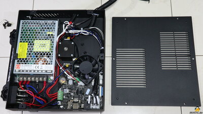 The Gadget in detailFigure 1:The CRUX 1 from Tronxy I is a very compact 3D printer. The print volume is 180x180x170mm and with the dimensions 40x44x41cm including filament spool, the CRUX1 fits on any desk or finds a place even on a crowded workbench. With the small carrying handle on top of the device, the printer can be quickly put away after work is done. A filament sensor and the ability to continue printing after a power failure reduce the risk of failed prints. In contrast to some competitors, Tronxy follows the rules of the GPL license of the Marlin firmware and sent me the source code of the modified version by email on request. This is totally in the spirit of "How Open Is This Gadget?". Technical data