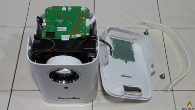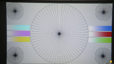 Package contentsFigure 2:Included in the shipping box are a power cord, an HDMI and an AV cable as well as a remote control. InnenlebenFigure 3:A matrix of 11x6 corresponding to 66 LEDs serves as the light source. These LEDs consume the largest part of the electrical input power and must therefore be actively cooled in order to remove the dissipated power. The fan used for this is temperature-controlled, but somehow always turned on which can be heard. The image generated by a 1280x720 pixel LCD and two Fresnel lenses, is directed to the front lens via a mirror. Photos test patternsFigure 4:Uniform illumination. Details on the test procedure. Figure 5: Test pattern. Details on the test procedure. Figure 6: Colors. Details on the test procedure. My conclusionThe "Joy" from GammaBai is a low-cost projector for your entry into the world of "big pictures" or as a second device on the go. You shouldn't expect perfection at the asking price, but you definitely get a device that at least throws good projections onto any white wall, provided the ambient light is rather low. When it comes to electronics and firmware, the "Joy" is very flexible. Data can be transmitted both wirelessly and via USB.The big downside: the firmware is closed source (which is unfortunately true for the competitors as well). ...and because we're talking about a cheap device with a plastic case that gets warm during use: The first video evening should be held in a well-ventilated room. After a few hours of operation, the vapors will dissipate and the cinema fun will increase.